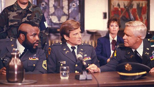 B.A. Baracus is the mechanic with a "Bad Attitude" and the muscle for the team.